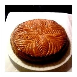 c'est moi qui l'ai eu !!! Ma galette est faite avec de la pâte feuilletée inversée (c'est mieux que la pâte feuilletée toute simple) et elle est fourrée à la crème d'amande comme au bon vieux temps.
